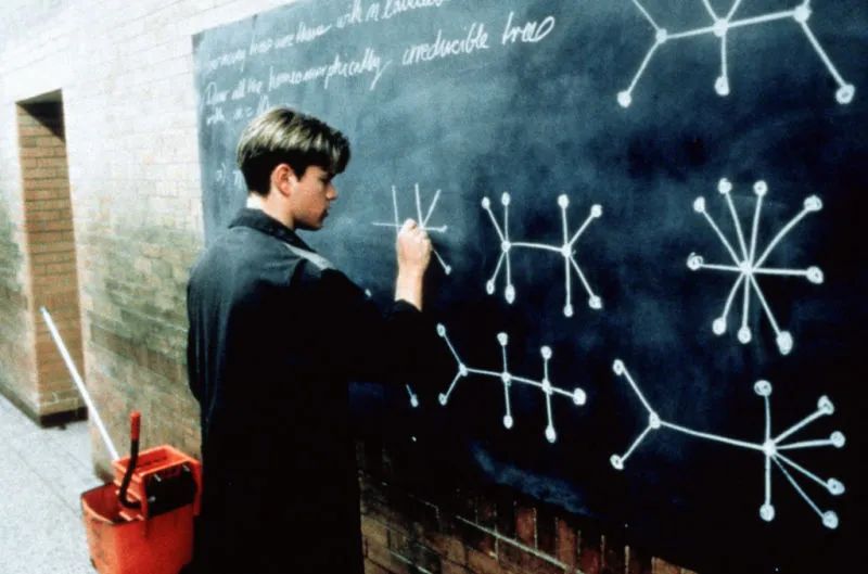 电影《心灵捕手》讲述了这样一个少年天才,清洁工“呆萌”在大学拖地板时,解出了麻省理工学院数学系教授给出的难题,他的天赋震惊了这位菲尔茨奖(数学界的“诺贝尔奖”)得主。