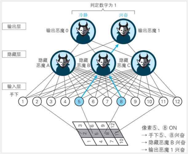 - 如果每个级别的恶魔与前一个级别的输入相匹配,就会兴奋(点火)。